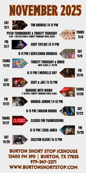 Come on down for some live music at the Burton Short Stop Ice House from 9pm-12am!